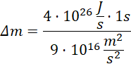 - Zmniejszenie masy Słońca w ciągu jednej sekundy emisji promieniowania (