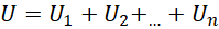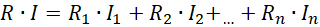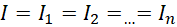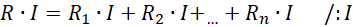 Oporniki są połączone szeregowo, więc napięcie całego układu jest równe sumie napięć na wszystkich opornikach. Z połączenia szeregowo wynika też fakt, że natężenie prądu na każdym z oporników jest takie samo.