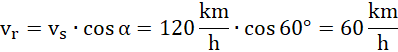 Oblicz, jaką prędkość samochodu pokazałby policyjny radar, gdyby samochód jechał pod kątem 60° do linii łączącej go z policjantem i z prędkością .