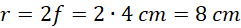 Oblicz długość promienia krzywizny zwierciadła, jeśli ognisko znajduje się w odległości 4 cm od zwierciadła.