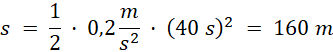 Ciało pokonało w czasie pierwszych 10 s ruchu 160 m.