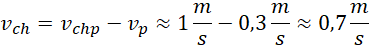 Szybkość platformy i chłopca względem platformy oblicz korzystając ze wzoru na prędkość w ruchu jednostajnym. Prędkość chłopca względem podłoża jest prędkością względną – różnicą obu prędkości.