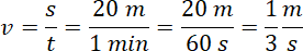 W ciągu 1 minuty kostka masła przebyła 20 metrów. Oznacza to, iż jej szybkość wynosi: