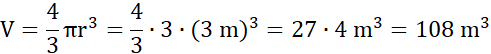 Dla 5,8 m średnicy promień będzie wynosić 2,9 m. Zauważ, że we wzorze na objętość kuli trzeba podnieść do 3 potęgi promień. Przybliżając jego wartość do 3 i wartość pi do 3 otrzymamy: