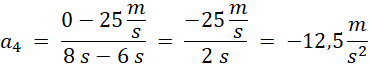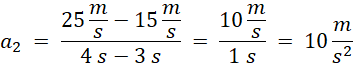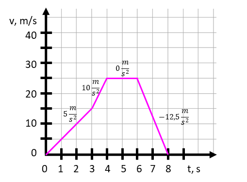 Odczytaj z wykresu prędkości ciała na początku i końcu kolejnych okresów ruchu oraz ile trwał ten ruch, na tej podstawie oblicz przyspieszenie, z jakim ciało się poruszało: