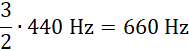 Podaj kilka częstotliwości dźwięków, które będą dobrze współbrzmieć z dźwiękiem o częstotliwości 440 Hz, oznaczonym a1 wiedząc, że dwa dźwięki dobrze współbrzmią, gdy stosunek ich częstotliwości jest ułamkiem, w którym licznik i mianownik są małymi liczbami naturalnymi.