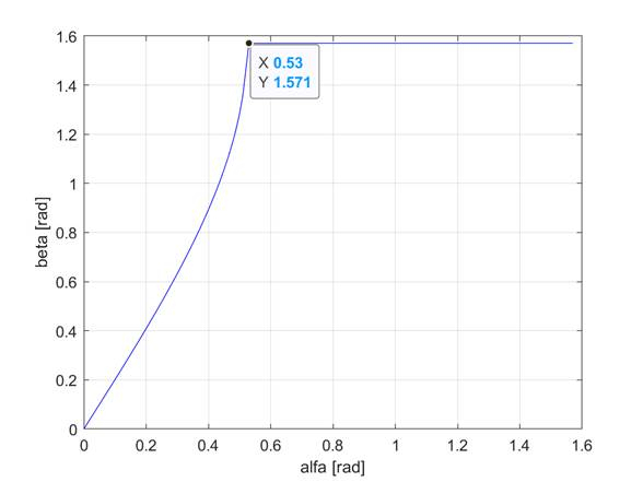 Wykorzystujemy zależność zachodzącą pomiędzy kątami padania fal, a ich prędkościami w różnych ośrodkach i przekształcamy ją. Następnie rysujemy wykres – w przykładzie użyto programu Matlab. Na koniec odczytujemy wartość kąta granicznego w radianach i zamieniamy jego wartość na stopnie.