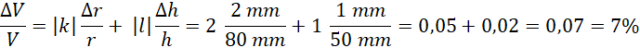 Na podstawie danych zawartych w treści zadania oblicz niepewność względną i bezwzględną pomiaru objętości walca za pomocą uproszczonej metody logarytmicznej.