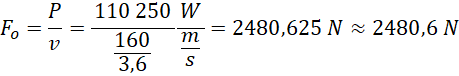 Należy obliczyć wartość sił oporu działających na samochód przy prędkości wiedząc, że jego moc wynosi 150 KM.