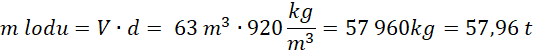 Liczymy objętość lodu, znając wymiary boiska i grubość lodu. Następnie obliczamy jego masę. Znając wartości masy lodu i ciepła topnienia wody, obliczamy ilość energii konieczną do stopienia lodu, korzystając z przekształconego wzoru na ciepło topnienia.