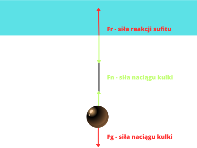 Należy na rysunku przedstawić siły działające na kulkę, linkę oraz sufit.