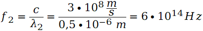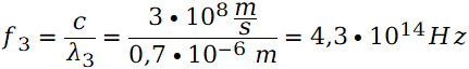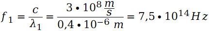 W tym zadaniu musisz obliczyć częstotliwość światła fioletowego, zielonego i pomarańczowego.