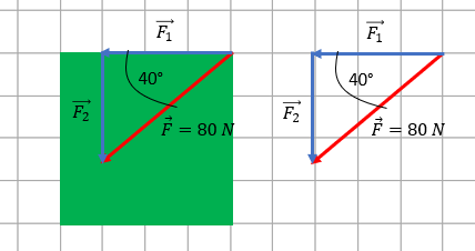 Aby wyznaczyć wartość siły popychającej pudło, możesz narysować trójkąt przedstawiający znaną siłę i jej składową. Najpierw narysuj wyznacz kąt odchylenia od poziomu równy 40°.