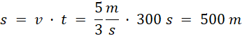 Wiadomo, że ciało poruszało się z stałą prędkością. Przelicz czas jaki ma się poruszać z minut na sekundy, aby utrzymać te same jednostki: 5 min = 5 · 60 s = 300 s.