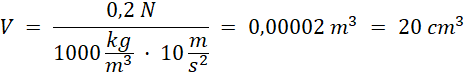 Wartość siły wyporu jest równa ciężarowi cieczy, możesz więc obliczyć objętość ciężarka