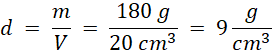 Gęstość materiału z jakiego wykonano ciężarek będzie stosunkiem masy do objętości
