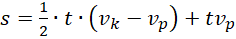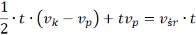 Średnia prędkość ruch ciała A to prędkość, dla jakiej ciało B, poruszające się z tą prędkością przez czas trwania ruchu, pokona taką samą odległość jak ciało A. Odległość tą możemy policzyć jako pole pod wykresem funkcji prędkości od czasu. Jeśli ciało A poruszało się ruchem jednostajnie przyspieszonym, to wykres ten jest linią prostą, a więc