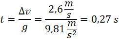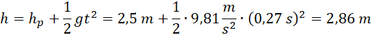 Piłka wzniesie się na wysokość 2,86 metra w ciągu 0,27 sekundy od odbicia.