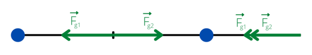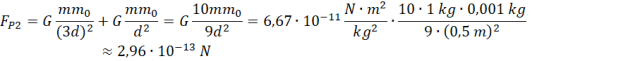 Obliczamy siły wypadkowe, dodając do siebie w odpowiedni sposób siły działające od kulek. W pierwszym przypadku siły mają różne zwroty, więc je odejmujemy. W drugim zwroty są takie same, więc je dodajemy. Siła grawitacji jest zawsze skierowana w stronę ciała, które ją wywołuje.