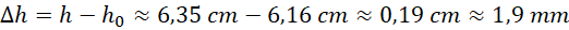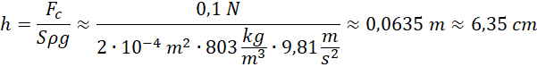 Wykorzystujemy wzór na współczynnik rozszerzalności objętościowej, który przekształcamy, aby otrzymać zależność na gęstość rtęci po podgrzaniu. Podstawiamy dane liczbowe i wykonujemy odpowiednie obliczenia. Następnie obliczamy wysokość, na jaką zanurza się areometr w obu temperaturach. Na koniec obliczamy różnicę pomiędzy tymi poziomami.