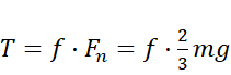 Siła, która powoduje zsuwanie się liny ze stołu to ciężar liny znajdującej się poza jego krawędzią (1/3). Siła tarcia pochodzi jedynie od nacisku liny, która znajduje się na stole. Wiedząc, że siła tarcia to iloczyn współczynnika tarcia i nacisku ciała, a ciężar to iloczyn masy i przyspieszenia grawitacyjnego, oblicz wartość współczynnika.