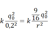 Wiedząc, że siły przed i po zmianach muszą być równe, stwórz równanie. Ładunki po zmianach są uzależnione od ładunku początkowego, który w równaniu się skróci. Przekształć wzór, by otrzymać r. Oblicz jego wartość.