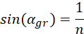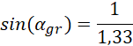 Korzystając z prawa załamania, znajdź kąt graniczny, dla którego zachodzi całkowite wewnętrzne odbicie w wodzie: