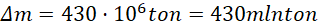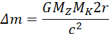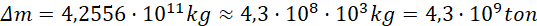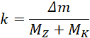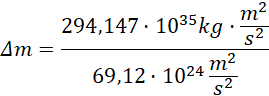 Ostatecznie, stosunek deficytu masy do masy układu wynosi