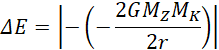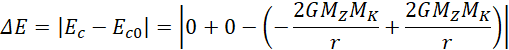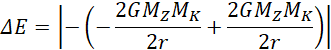 Zmiana energii odpowiada różnicy między energią układu w nieskończoności a energią układu w stanie początkowym. Układem jest Ziemia oraz Księżyc krążący wokół niej.