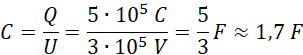 , gdzie C – pojemność kondensatora, Q –zgromadzony ładunek, U – napięcie.
