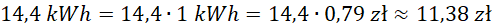 Średni koszt energii (1kWh) = 0,79 zł