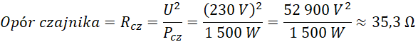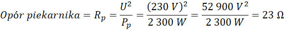 Podłóż osobno do wzoru dane dla czajnika i do piekarnika, i oblicz opory obu urządzeń.