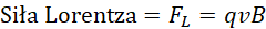 , gdzie FL – siła Lorentza, q – wartość ładunku elektronu, v – prędkość elektronu, B – wartość indukcji magnetycznej pola.