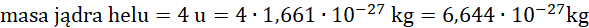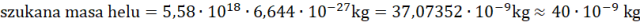 Oblicz masę tylu jąder helu mnożąc wagę jednego jądra i liczby jąder.