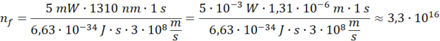 Ostatecznie wstaw za energię w powyższej definicji energię wiązki i wyznacz poszukiwaną liczbę fotonów. Pamiętaj o zamianie jednostek.