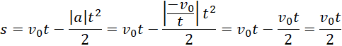 Na początku obliczamy opóźnienie ciała. Następnie zapisujemy wzór na drogę w ruchu jednostajnie opóźnionym. Wstawiamy do niego wzór na opóźnienie i wstawiamy dane liczbowe.