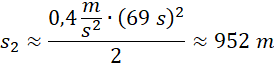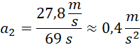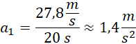 Oblicz wartość przyspieszenia aut oraz drogę, na której rozpędziły się one do 100 km/h: jedno w czasie 20 s, drugie w czasie 69 s.
