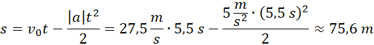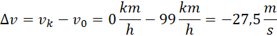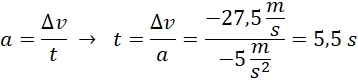 Oblicz drogę, jaką przejechał samochód od rozpoczęcia hamowania i czas jego trwania, jeśli odbywało się ono z przyspieszeniem o wartości 5 m/s2, a samochód poruszał się początkowo z szybkością 99 km/h
