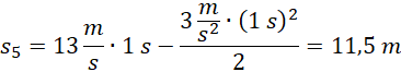 Wiedząc, że motorówka poruszała się ruchem jednostajnie opóźnionym od szybkości 90 km/h do 10 m/s w czasie 5 sekund, oblicz przebyte przez nią drogi w trzeciej i piątej sekundzie ruchu oraz jej średnią szybkość w trzeciej sekundzie.