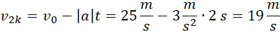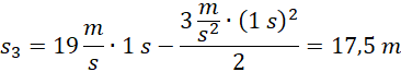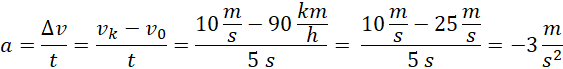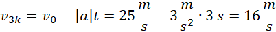 Zapisujemy wzór na opóźnienie motorówki i wyznaczamy jego wartość. Następnie zapisujemy wzory na drogi przebyte w poszczególnym czasie oraz na prędkość średnią w 3 sekundzie ruchu. Za pomocą odpowiednich zależności wyznaczamy prędkości końcowe po odpowiednim czasie. Na koniec podstawiamy dane liczbowe i wykonujemy obliczenia.