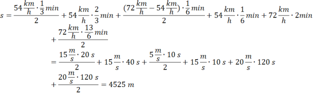 Drogę obliczamy jako pole pod wykresem. Szybkość średnią obliczamy, dzieląc całkowitą drogę przez czas, w jakim pojazd ją pokonał.