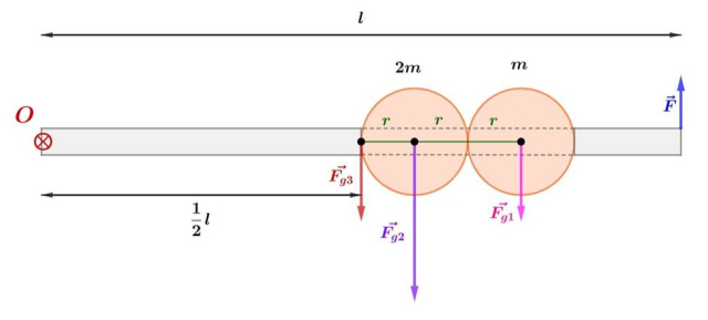 wynosi zero. Wyznacz go jako sumę wektorową momentów przyłożonych sił ciężkości obiektów oraz przyłożonej siły. Zauważ, że z reguły prawej dłoni wynika, że ich momenty sił są przeciwnie zwrócone (tę zasadę obrazuje ilustracja). Stąd wypadkowy moment sił jest równy ich różnicy, czyli całkowity moment sił ciężkości
