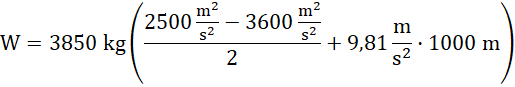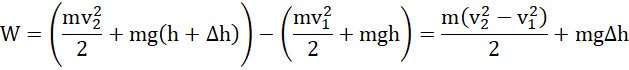 Pamiętaj, praca to przyrost energii mechanicznej, czyli różnica pomiędzy wartości końcowej energii mechanicznej i wartości energii mechanicznej na początku. Energia mechaniczna śmigłowca to suma energii kinetycznej (porusza się w poziomie) i potencjalnej (osiągnął pewną wysokość nad podłożem). Przyjmij, że na początku śmigłowiec znajdował się na pewnej wysokości h, a to oznacza, że potem znalazł się na wysokości h + ∆h – po odjęciu od energii potencjalnej na końcu ruchu, energii potencjalnej początkowej, dodatkowa zmienna skróci się.