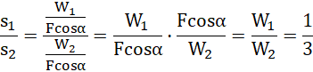 Wykorzystaj wartości pracy wyliczone w poprzednich Podpunkt:ach. Zauważ, pojazd porusza się ruchem jednostajnie przyspieszonym, czyli wartość przyspieszenia jest stała, z równości z drugiej zasady dynamiki wynika więc, że siła działająca na samochód pozostaje stała. Teraz wyznacz drogę ze wzoru na pracę (praca to iloczyn siły, przemieszczenia i cosinusa kąta pomiędzy tymi wektorami) i wykorzystaj w liczeniu stosunku dróg w podanych przedziałach – cosinus i siła skrócą się, więc stosunek drogi jest równy stosunkowi pracy.