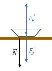 Na talerz działa siłą ciężkości Fg, z siłą o tej wartości N talerz naciska na stół. Stół odpowiada talerzowi siłą reakcji FR równą wywieranemu naciskowi.