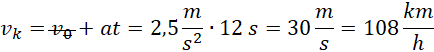 Zapisujemy wzór na drogę w ruchu jednostajnie przyspieszonym, z którego wyznaczamy wartość przyspieszenia. Wstawiamy ją do wzoru na prędkość końcową.