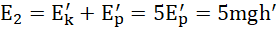 Na ciało nie działają siły zewnętrzne (czyli siły oporów ruchu), więc energia mechaniczna w każdym momencie ruchu jest taka sama. Zauważ, że gdy piłka znajduje się w najwyższym położeniu, jej energia mechaniczna jest równa wartości energii potencjalnej. W pewnym momencie piłka znajduje się na szukanej wysokości h’, wtedy energia mechaniczna to suma energii kinetycznej i energii potencjalnej – wykorzystaj fakt, że energia kinetyczna jest 4 razy większa od energii potencjalnej i zapisz energię mechaniczną ciała na tej wysokości jako pięciokrotność energii potencjalnej. Przyrównaj do siebie energie mechaniczne piłki w badanych sytuacjach i wyznacz wartość szukanej wysokości.