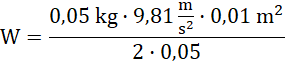 Pamiętaj, praca wykonana podczas ściskania sprężyny jest równa przyrostowi energii potencjalnej sprężystości sprężyny (na początku wartość energii wynosi zero). Wartość energii potencjalnej sprężystości poznasz, mnożąc połowę współczynnika sprężystości przez kwadrat wydłużenia. Aby wyznaczyć wartość współczynnika sprężystości, wykorzystaj informację o wydłużeniu sprężyny pod wpływem ciężarka – odważnik nie porusza się, więc z pierwszej zasady dynamiki siła ciężkości ciężarka i siła sprężystości sprężyny równoważą się (mają taką samą wartość, ale przeciwne zwroty). Wykorzystaj tę zależność i ze wzoru na siłę sprężystości (iloczyn współczynnika sprężystości i wychylenia) wyznacz szukaną wartość.