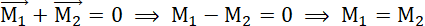 Ponieważ układ pozostaje w spoczynku, to zgodnie z pierwszą zasadą dynamiki dla ruchu obrotowego i wskazówką, wypadkowy moment sił