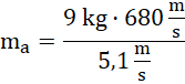 Zwroty wektorów prędkości pocisku i armaty są przeciwne, więc należy zapisać:
